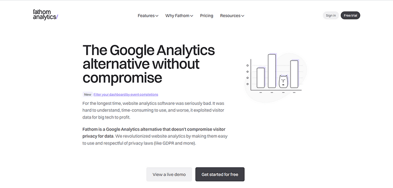 Fathom Analytics is a simple Google Analytics alternative that prioritizes simplicity and your privacy.