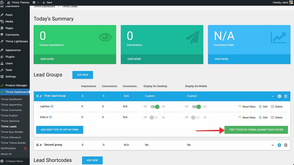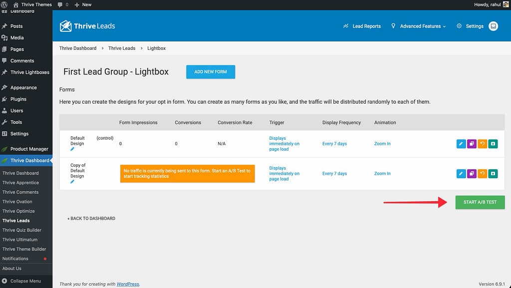 - Design Test: Test two different variations of the same form type (e.g., Lightbox A vs. Lightbox B with different colors).