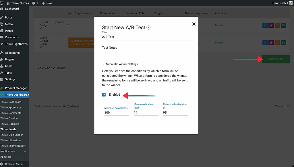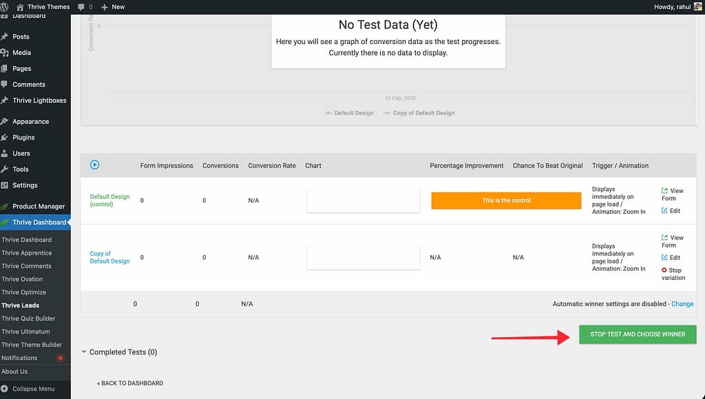 - If enabled, Thrive Leads will automatically stop the losing form and show only the winner once these criteria are met.