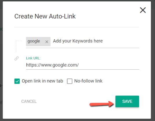 You can add as many linked keywords as you see fit, by clicking on the same “Add New” button. You will be able to view and administrate all of them from the same dashboard: