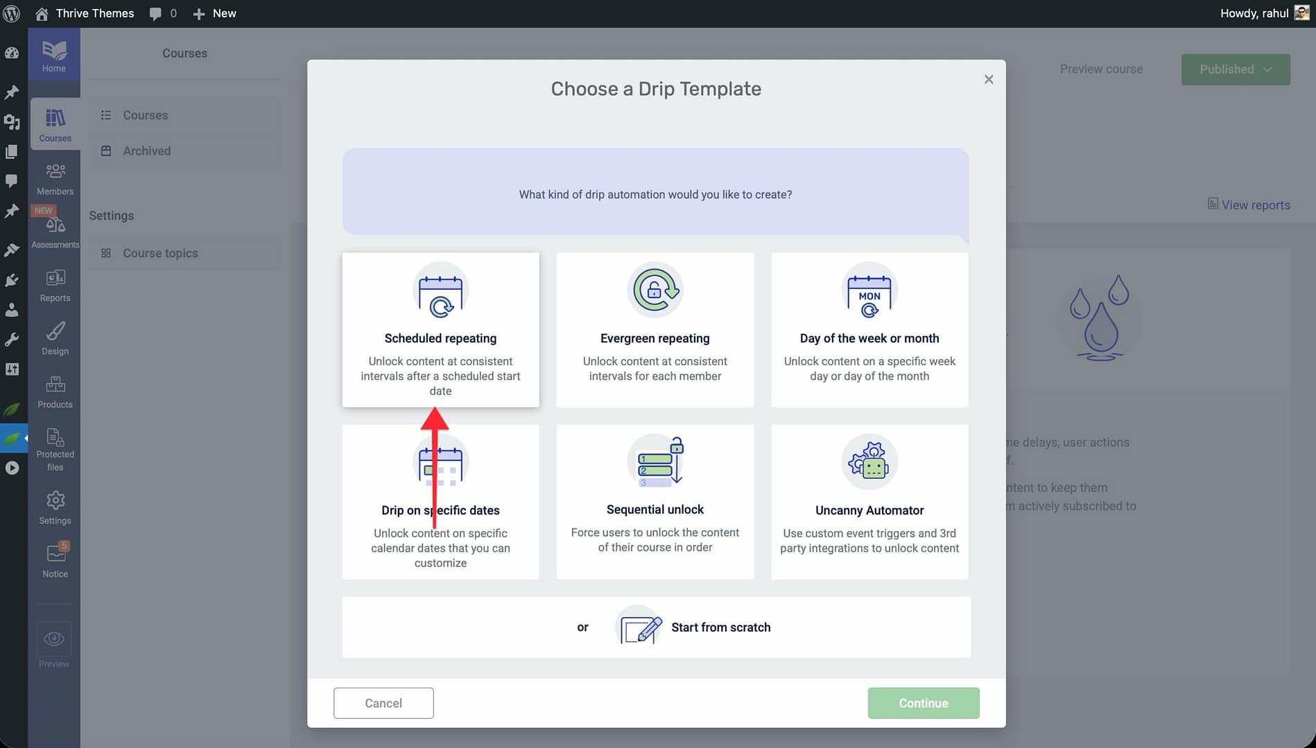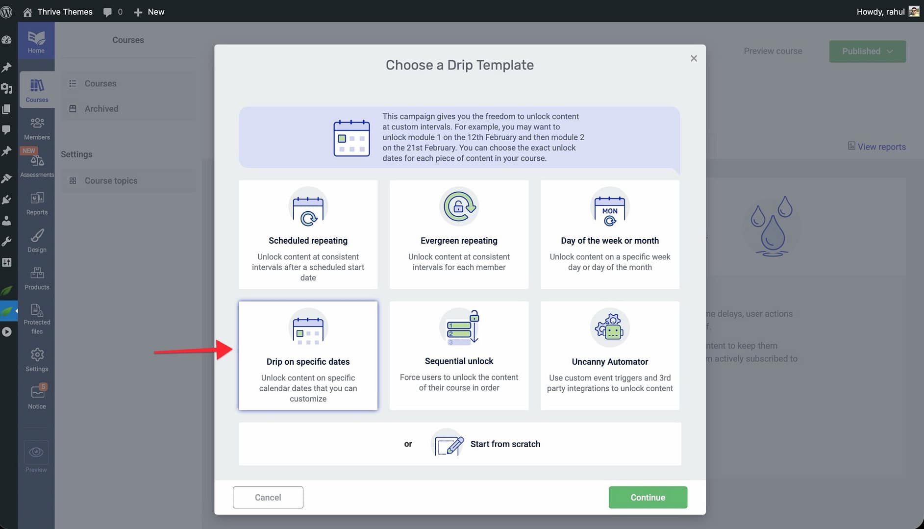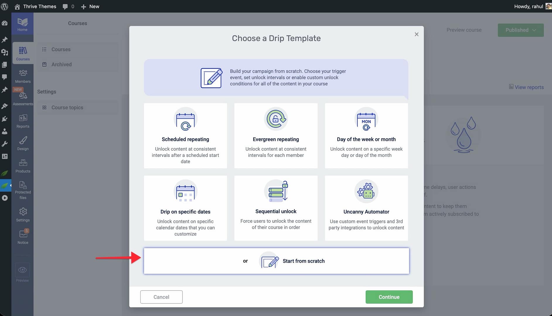 Tip: The Start From Scratch template is also the best choice when you want to exclude specific lessons from the drip schedule entirely, making them immediately accessible. See Advanced Drip Techniques for more on excluding lessons.