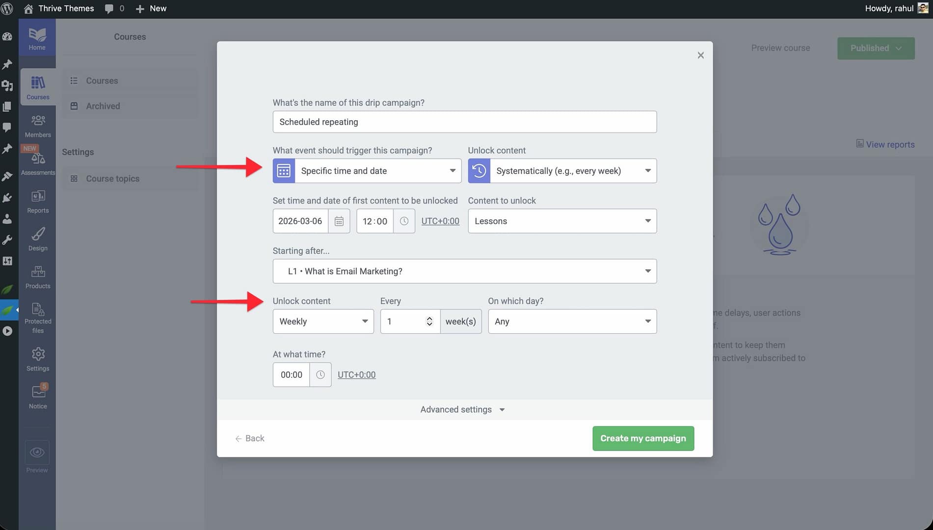 - Define how many content items unlock per interval (e.g., 1 lesson per week or 1 module per week).