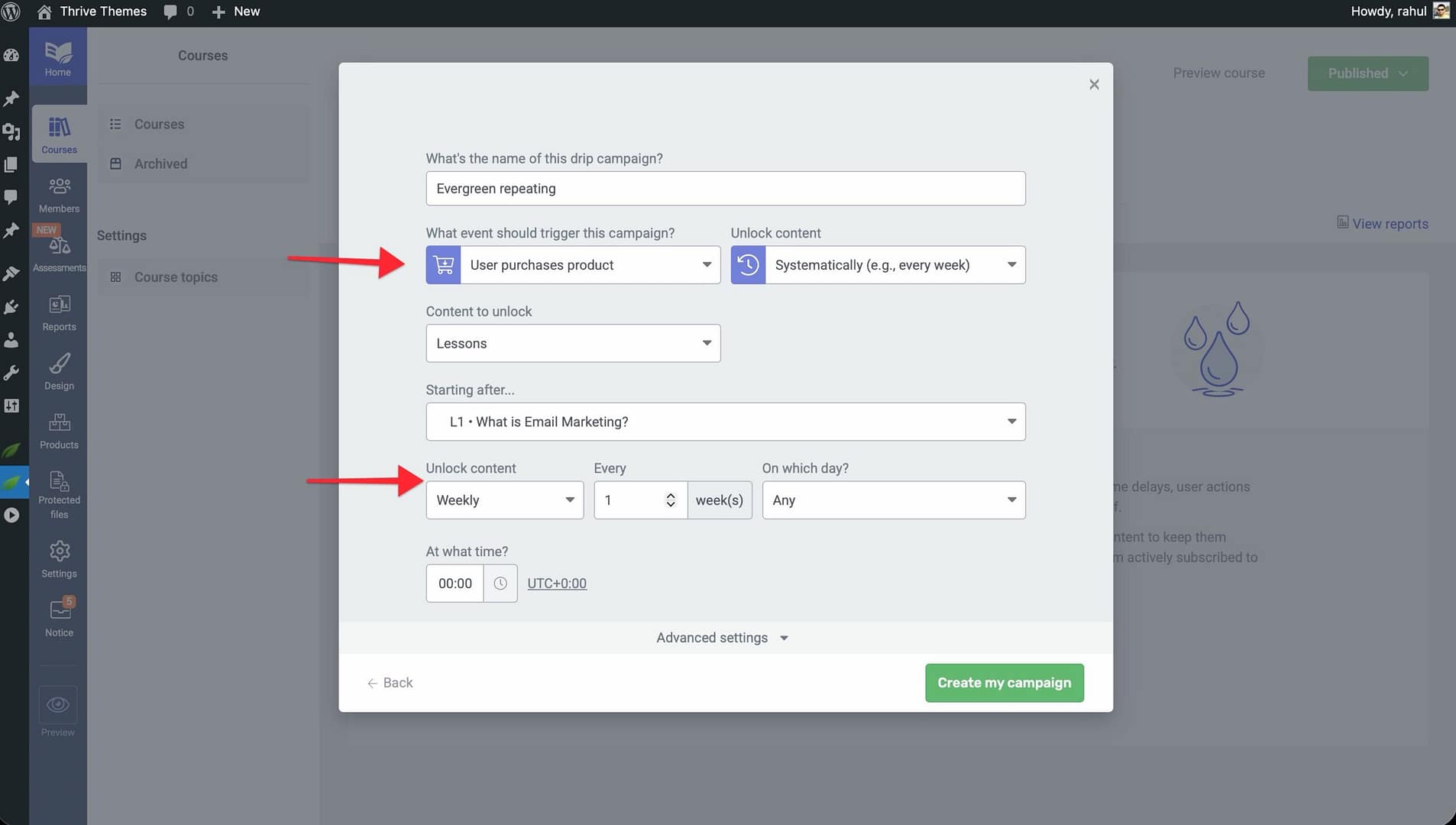 In this article, you’ll learn how to set up each of the seven drip campaign templates available in Thrive Apprentice—including what each template does, when to use it, and step-by-step instructions for configuring it.