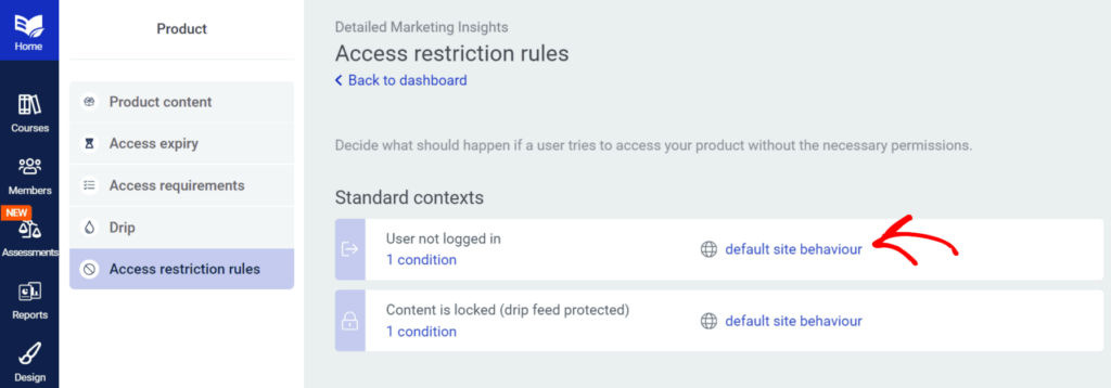 Once you have completed the access restriction rules, you can be assured that non-logged-in users will be redirected to a login or registration page, and users who have not purchased will be redirected to a custom purchase page.