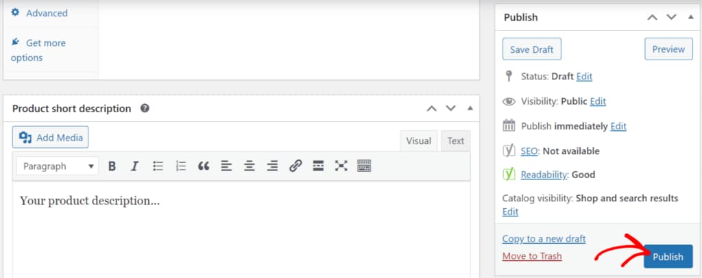 After you’ve selected the product, click the Publish button to publish your WooCommerce product.
