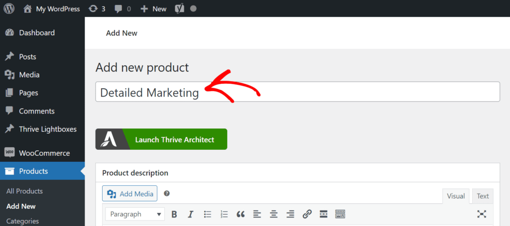 To create a new WooCommerce product, open your WordPress admin area and navigate to Products >> Add New.