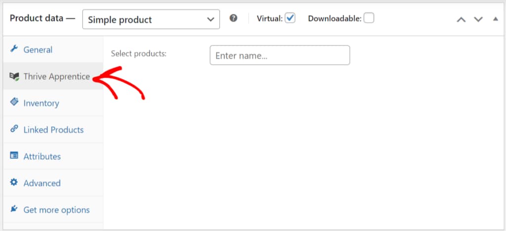 Note: Please ensure the Thrive Apprentice product is published before you select it in the WooCommerce dashboard.