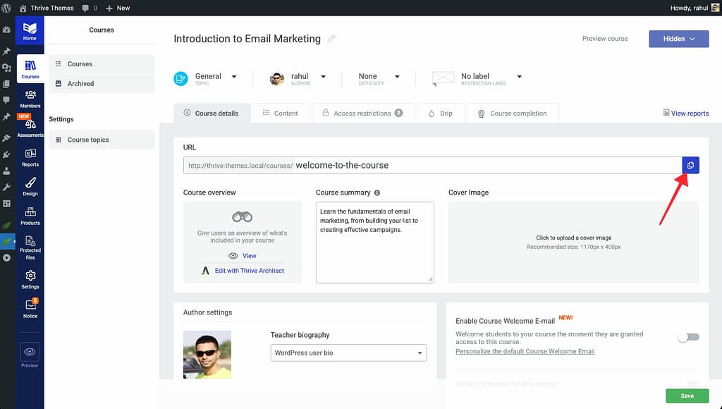 - Go to Thrive Dashboard > Thrive Apprentice > Courses.