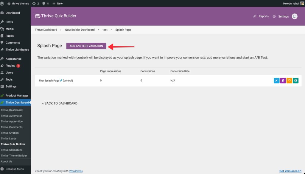 2. Click Add A/B Test Variation.