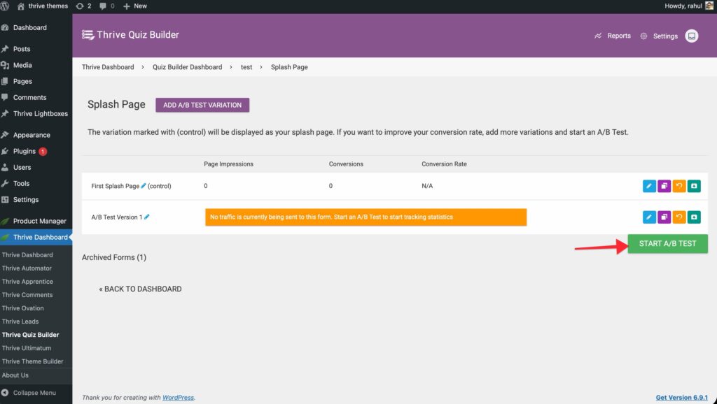 5. Click on Start A/B Test button