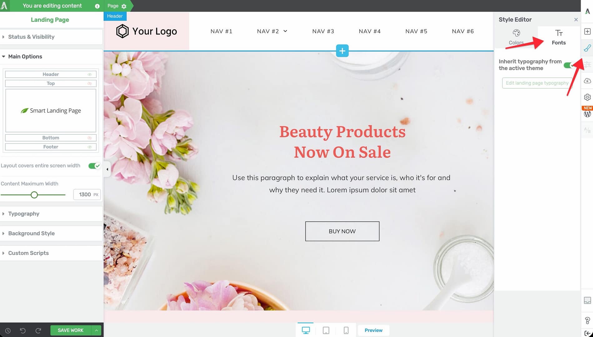 - Typography settings establish the default styles for a landing page. Individual elements can still override these defaults with their own styling.