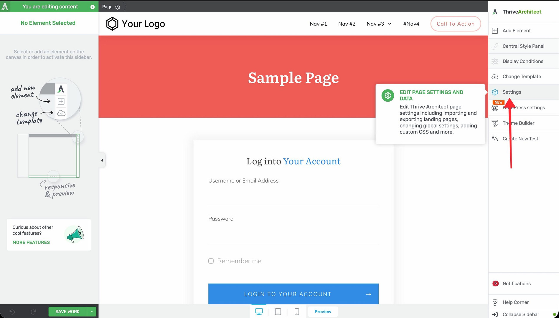 - Open the page in Thrive Architect.