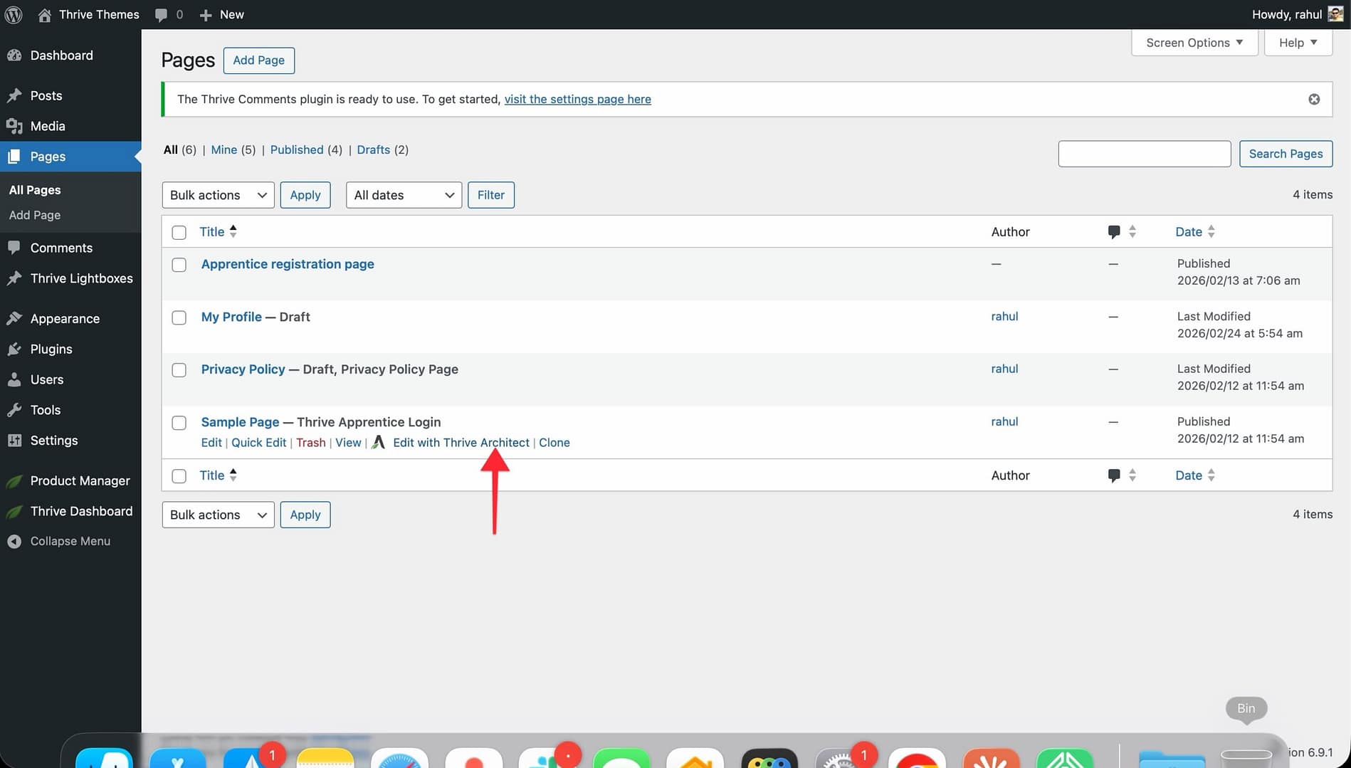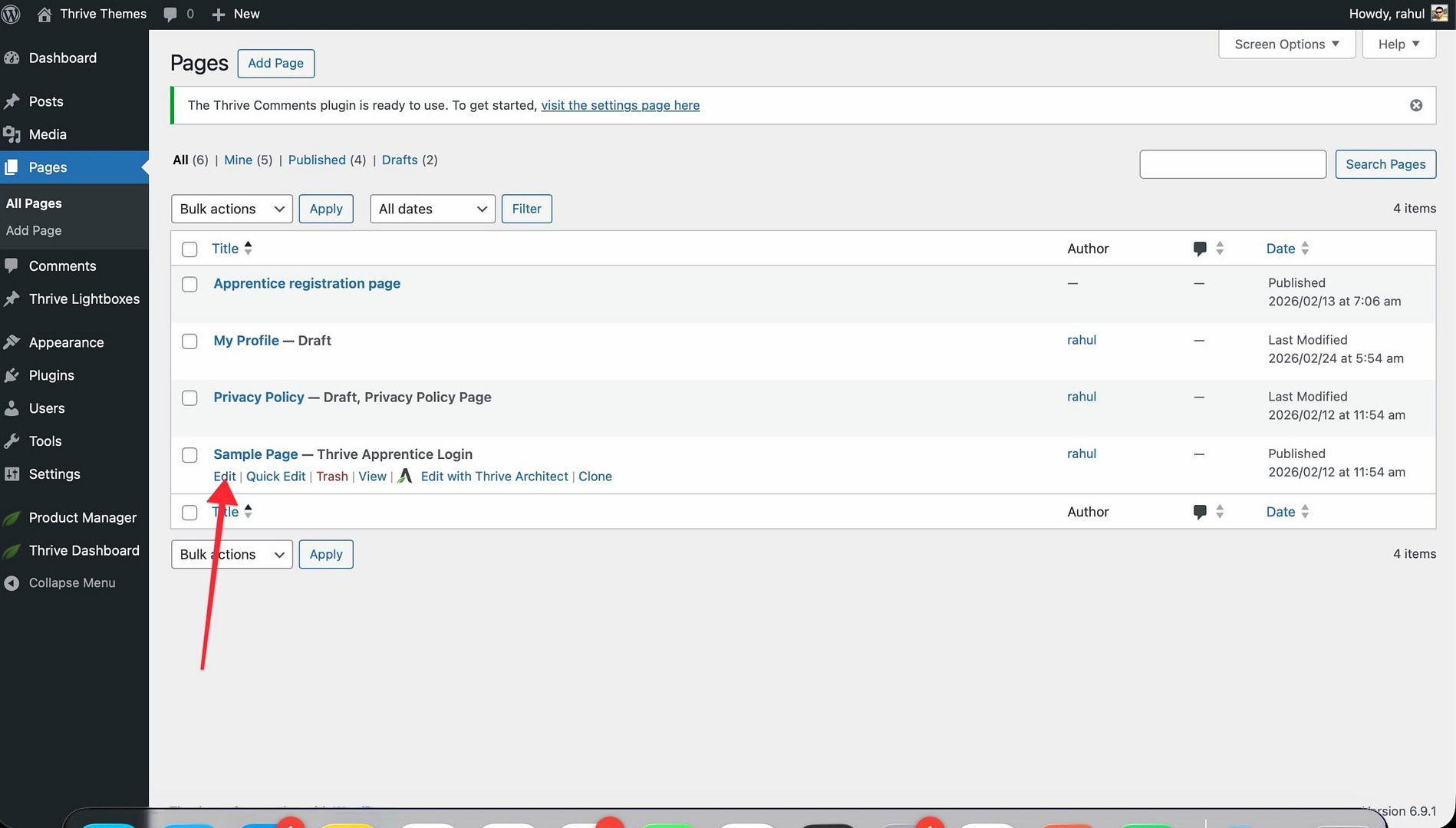 - In the WordPress admin dashboard, go to Pages > All Pages.