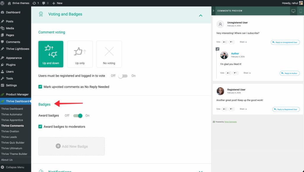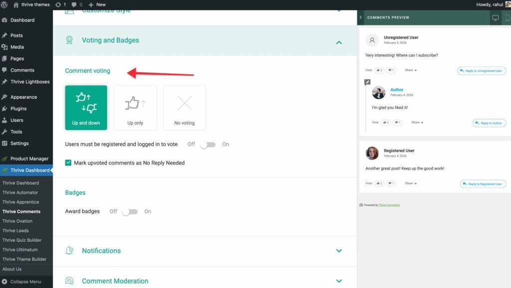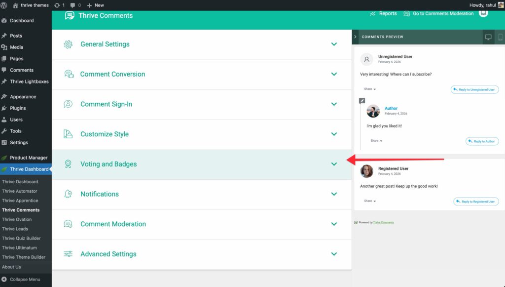 Thrive Comments includes powerful engagement features that transform passive readers into active participants. In this guide, you’ll learn how to enable comment voting, award badges to top contributors, and track engagement with detailed reports.