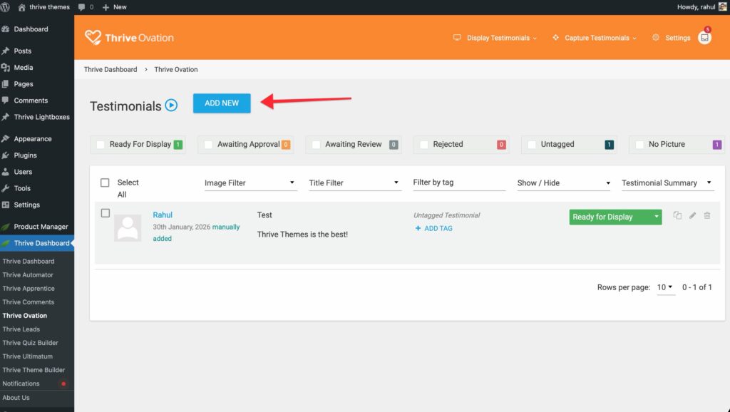 - From your WordPress dashboard, go to Thrive Dashboard > Thrive Ovation.