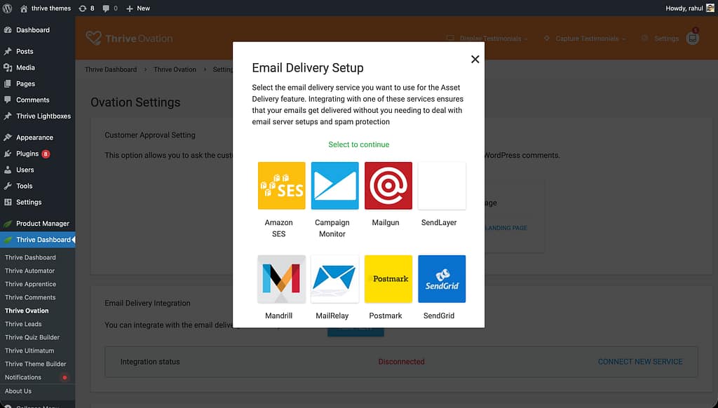 Thrive Ovation uses third-party email delivery services (like Mandrill, SendGrid, Mailgun, etc.) to send approval emails. This ensures higher deliverability than standard WordPress mail.