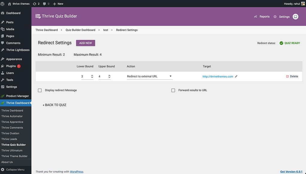 How to Configure Quiz Redirect Settings