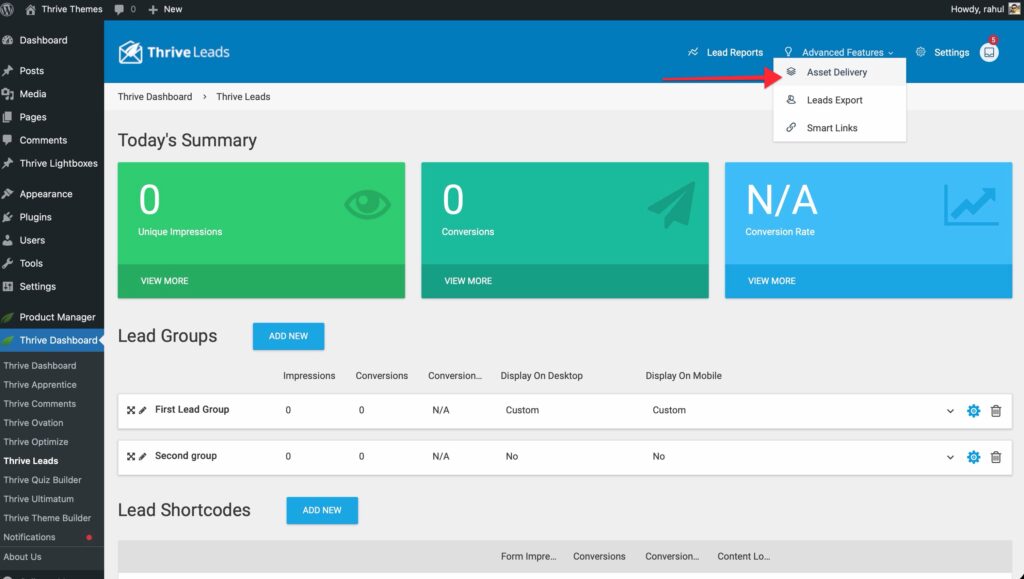 - Go to Thrive Dashboard > Thrive Leads.