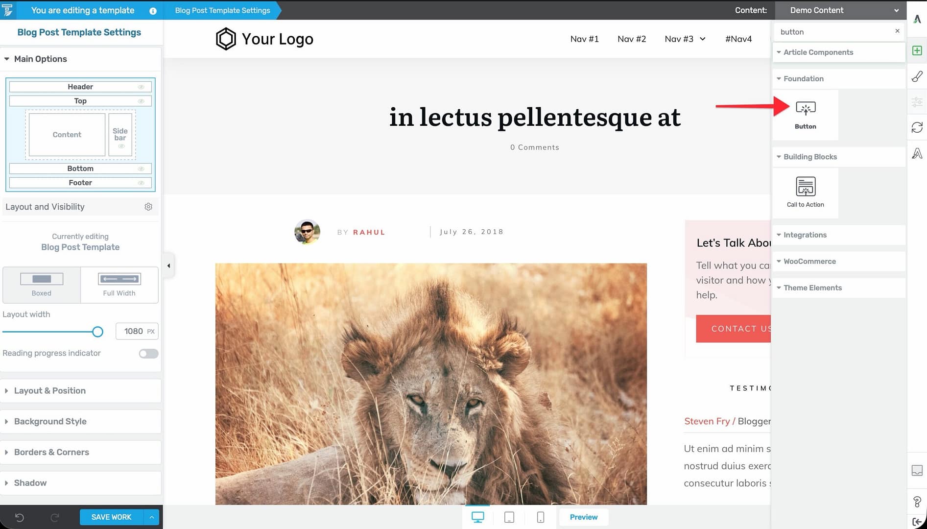 - Using the Header Section: Learn how to add buttons to the header.