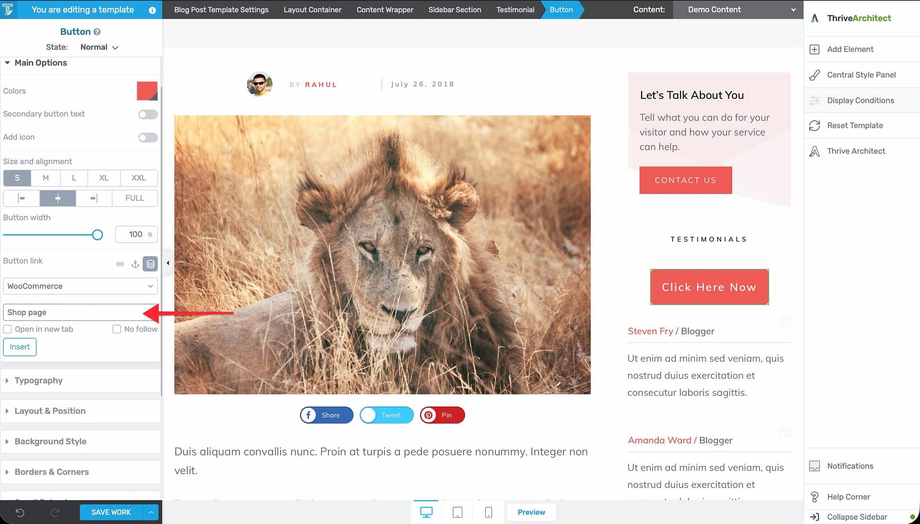 - Set the button text (e.g., “Browse Products” or “Visit Shop”).