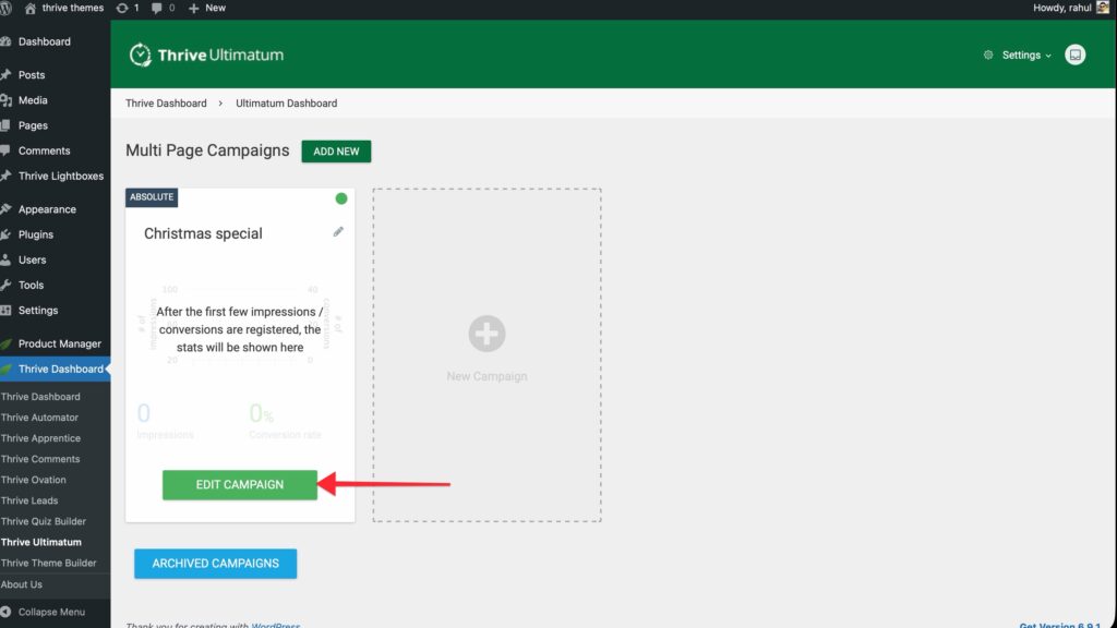 - Open your Thrive Ultimatum Dashboard.