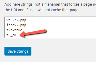 You can also exclude the specific query string tu_em if your plugin supports query string exclusions.