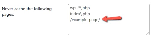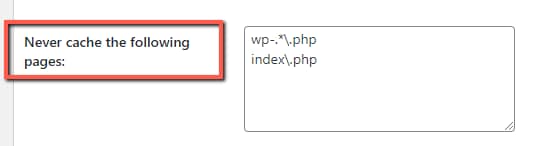 - Scroll to “Never cache the following pages”.