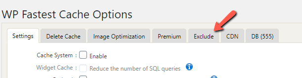 - Go to WP Fastest Cache -> Exclude.