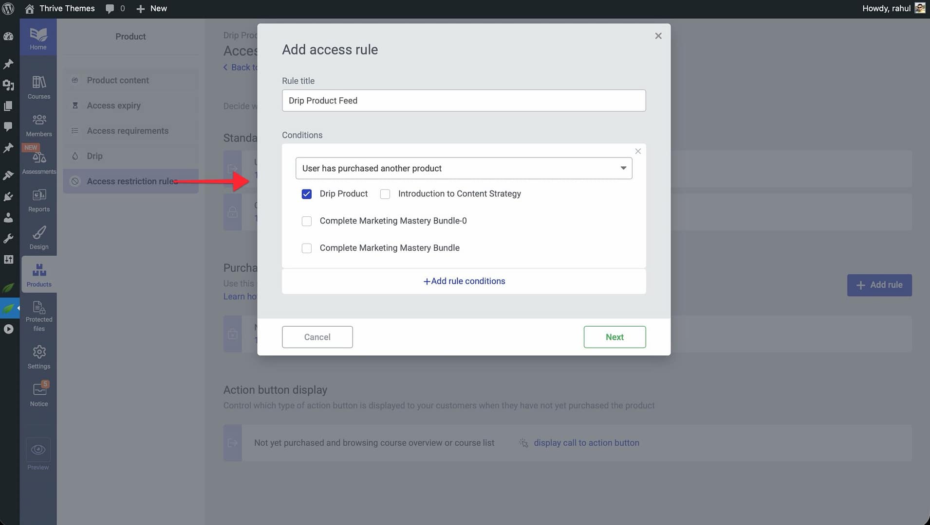 - Set up Access Restriction Rules so that only students who have purchased the product can view the course content.