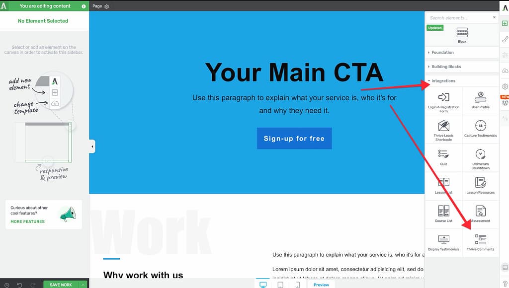 Thrive Comments can be added to Thrive Architect landing pages using a dedicated element.