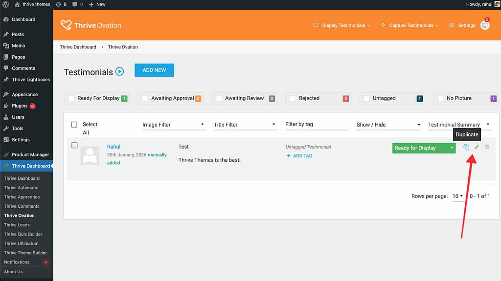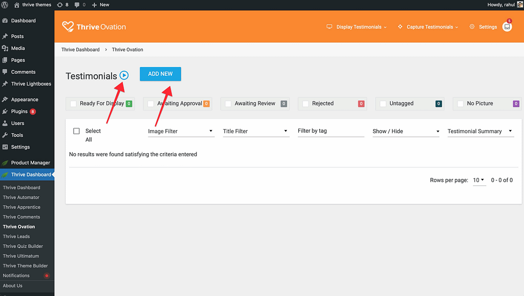 In this article, you’ll learn how to navigate the Thrive Ovation dashboard and understand the core features available to help you collect and display social proof on your website. This guide will walk you through the plugin’s interface and explain the difference between legacy testimonials and the advanced Thrive Ovation system.