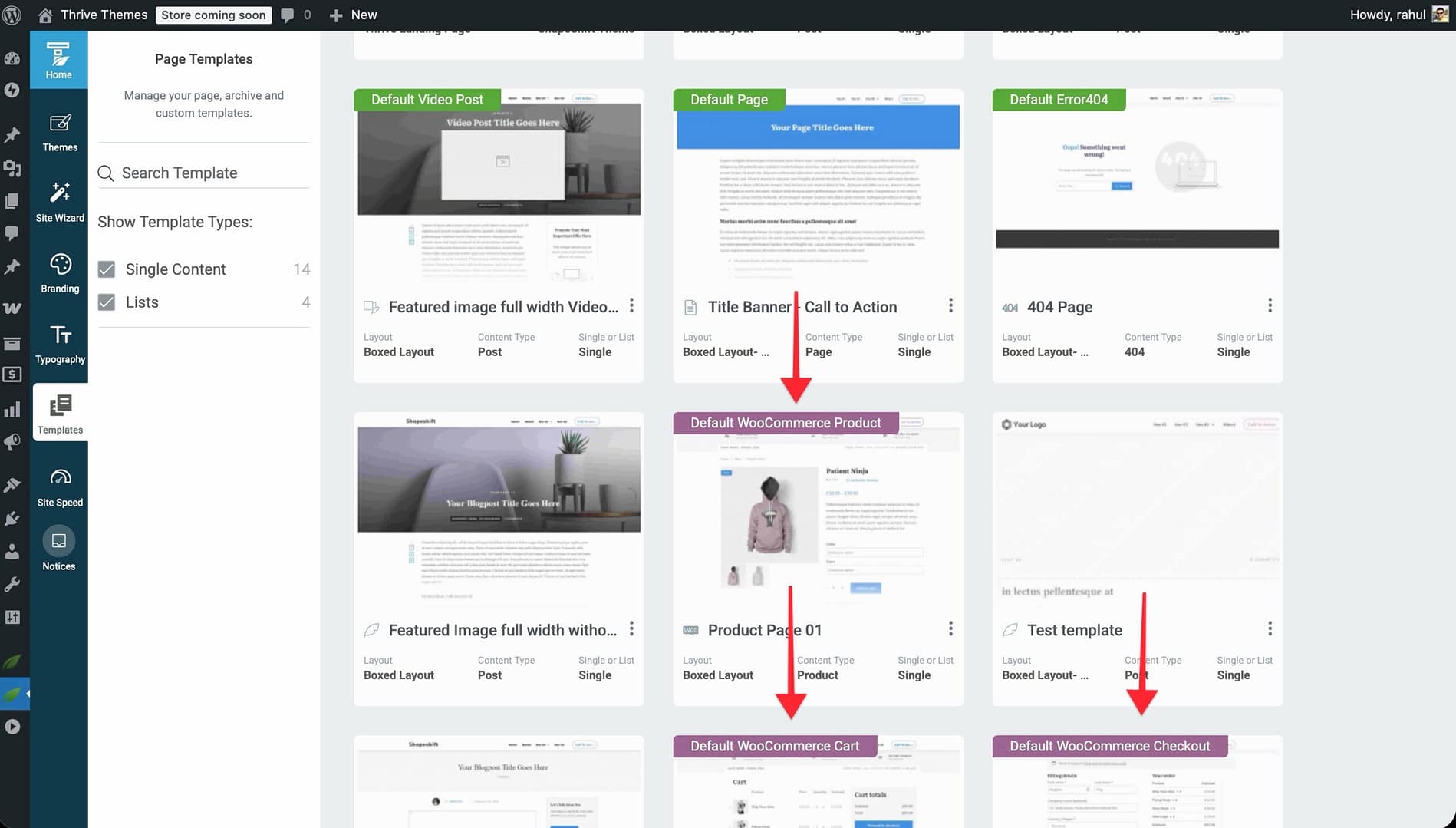 - Click the dropdown and select All Templates or look for WooCommerce-specific templates.