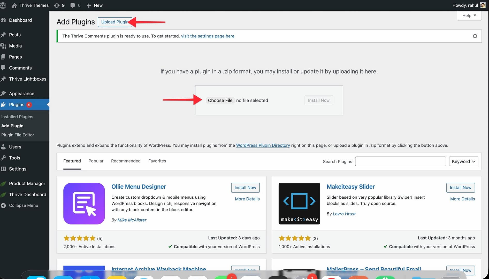- Upload and install the downloaded plugin on your WordPress website via Plugins > Add New > Upload Plugin.