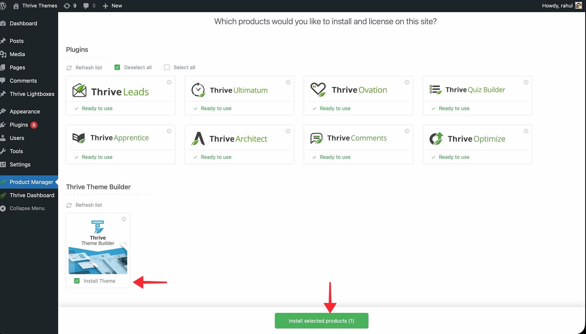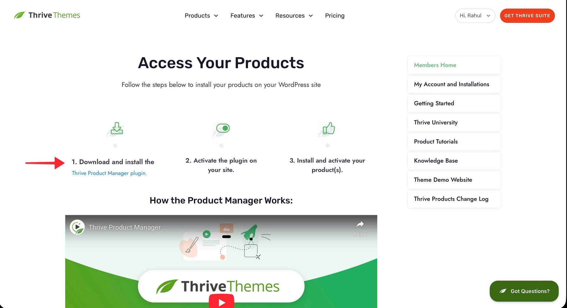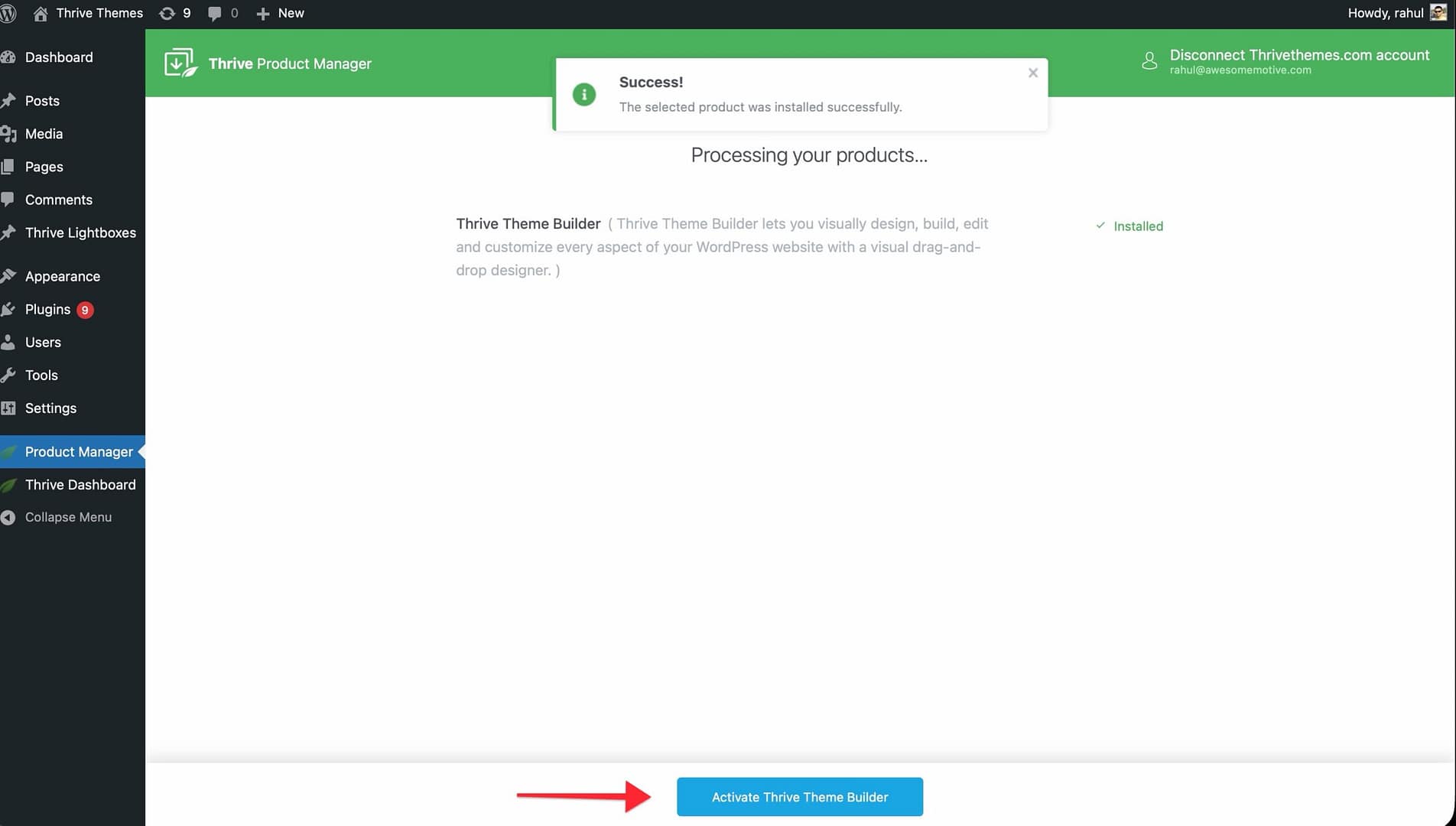 - Activate the Thrive Product Manager plugin.