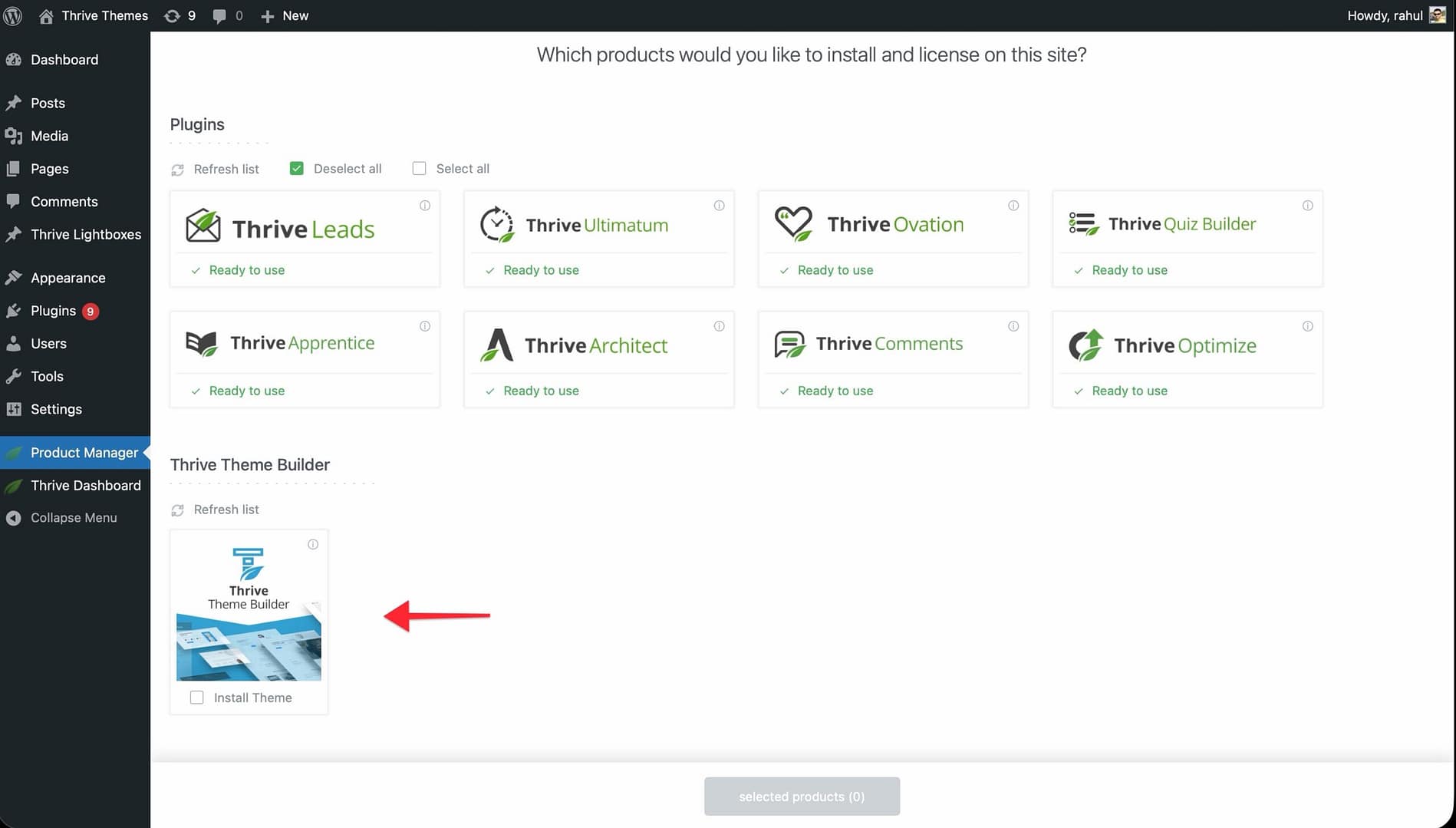 If you already have a Thrive Suite subscription, the Thrive Product Manager is likely installed on your website. Follow the steps below to install Thrive Theme Builder.