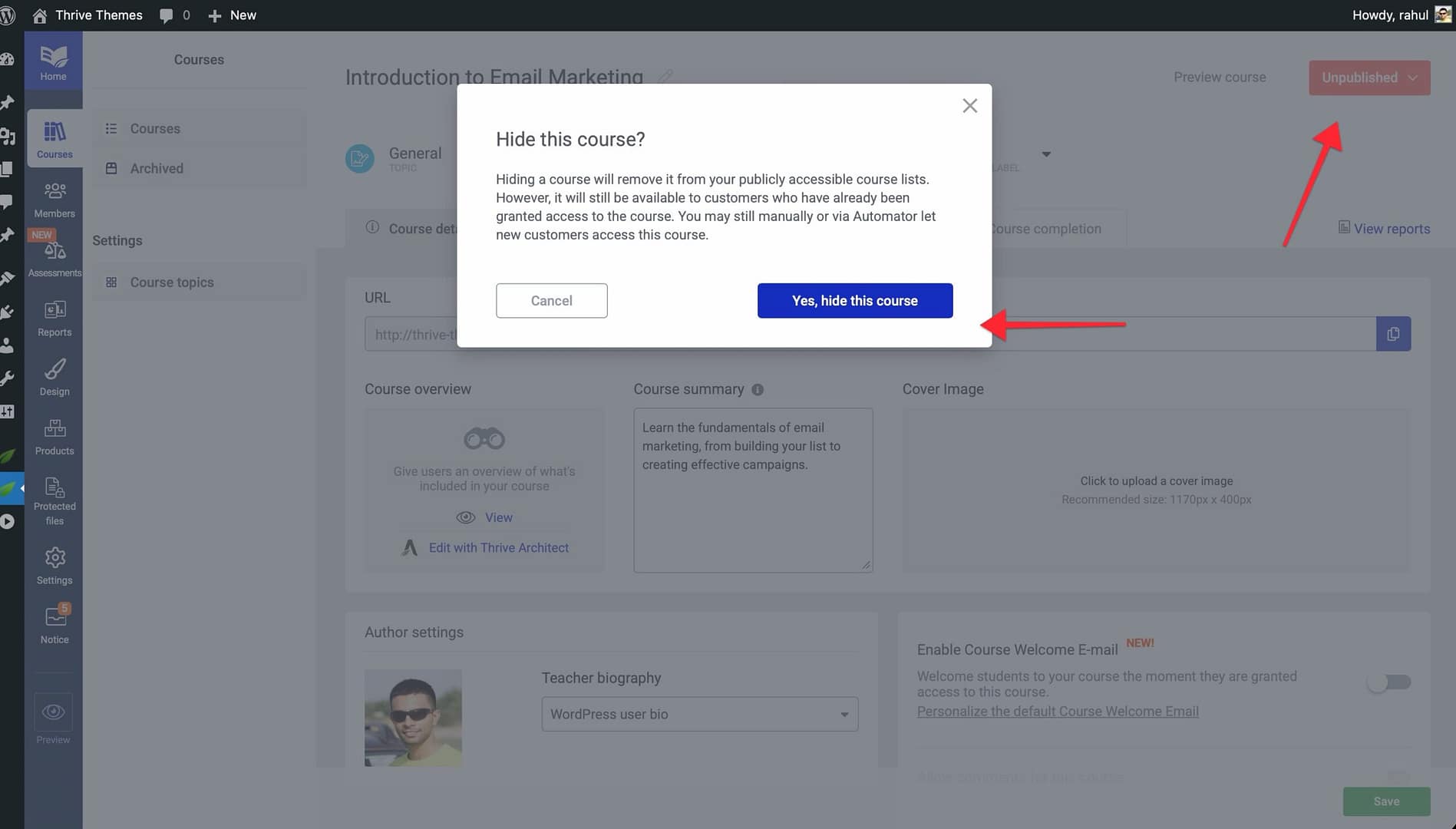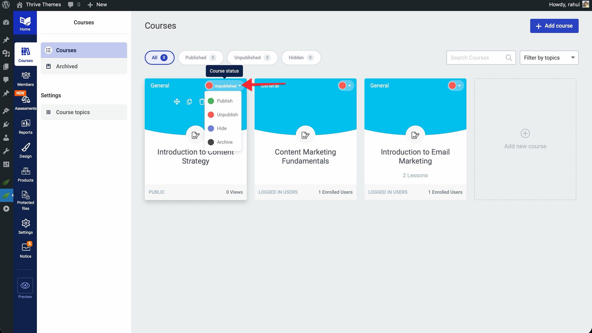 How to Change a Course's Status - Thrive Dashboard in Thrive Apprentice