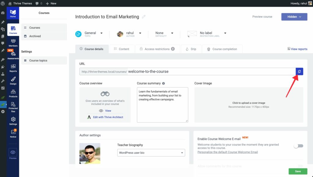 • Hidden — The course is not listed publicly, but users with a direct link can still access it. This is ideal for exclusive or invite-only courses.