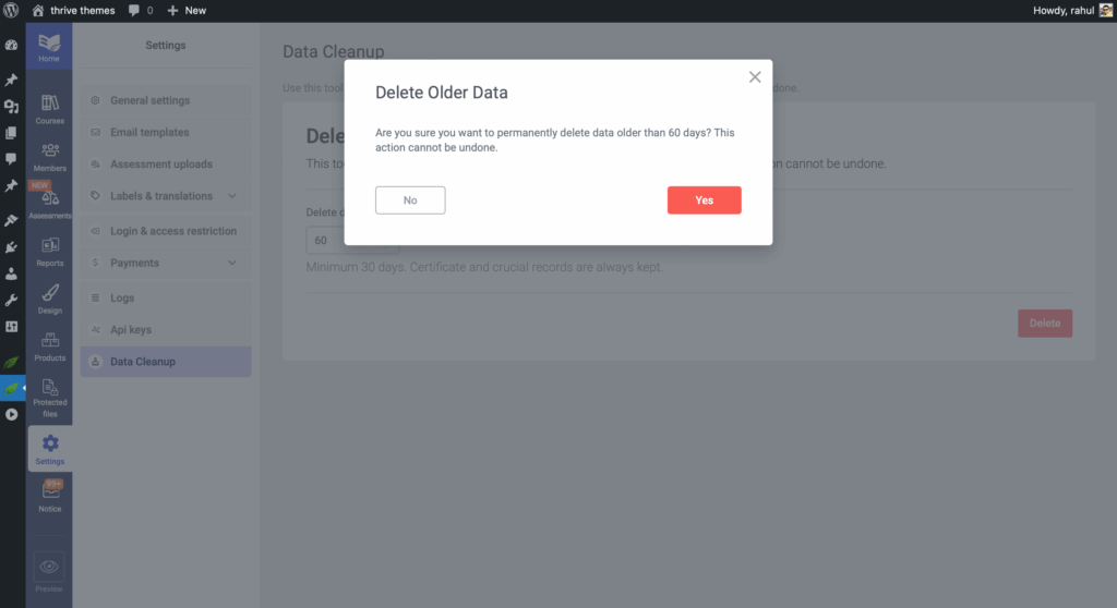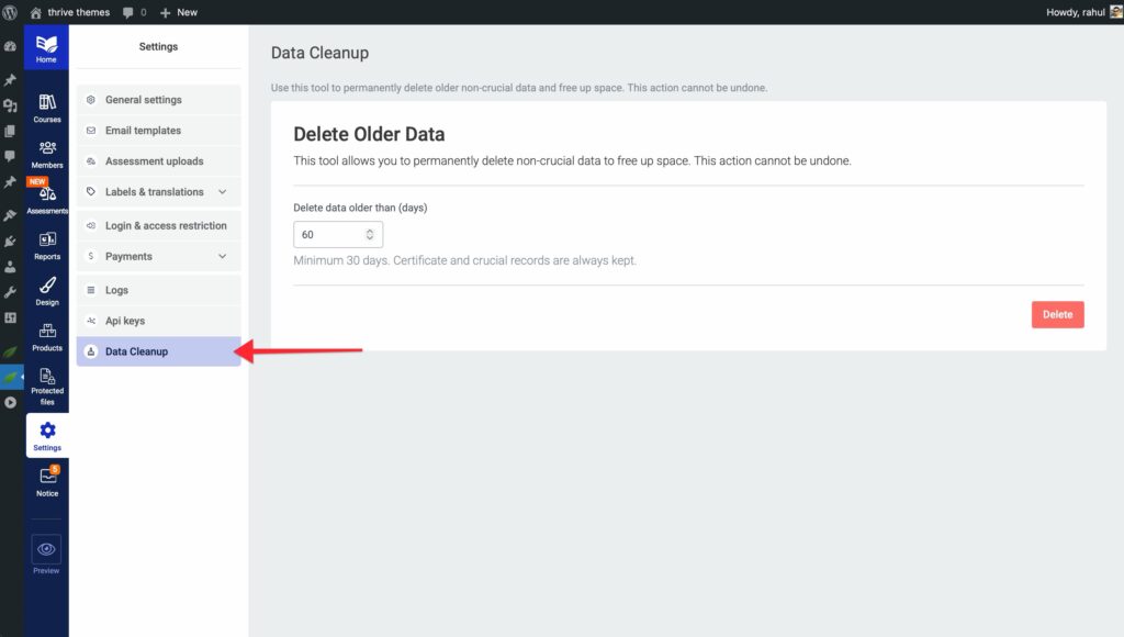 That’s it! You now know how to use the Data Cleanup tool in Thrive Apprentice to keep your database optimized.