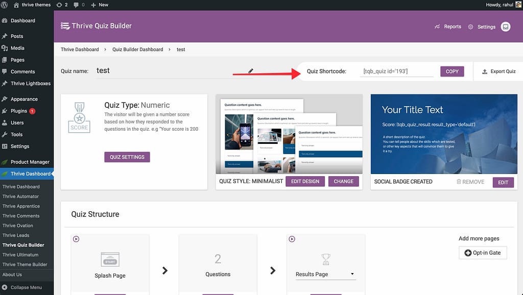- Locate your quiz and find the Shortcode card.