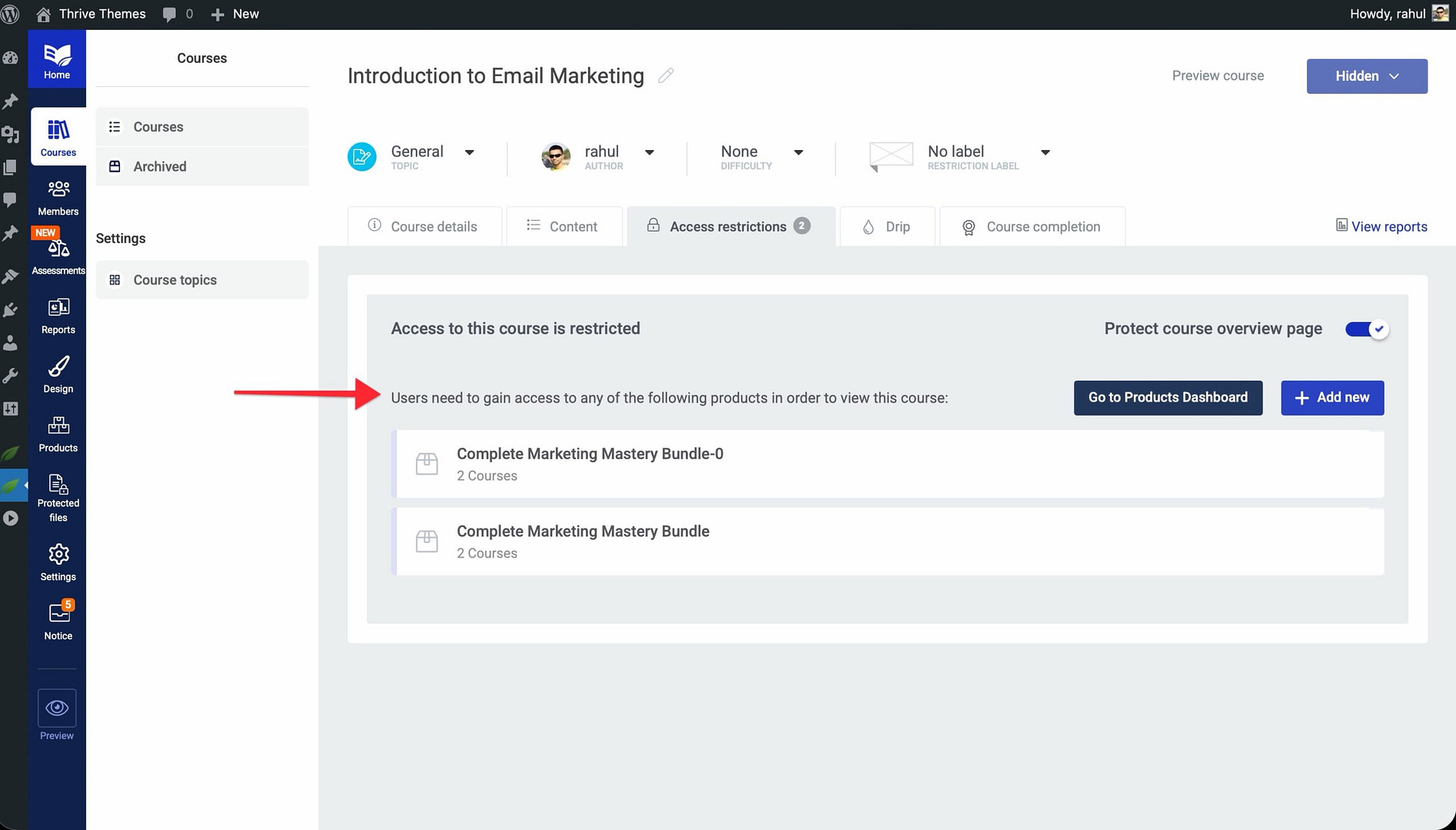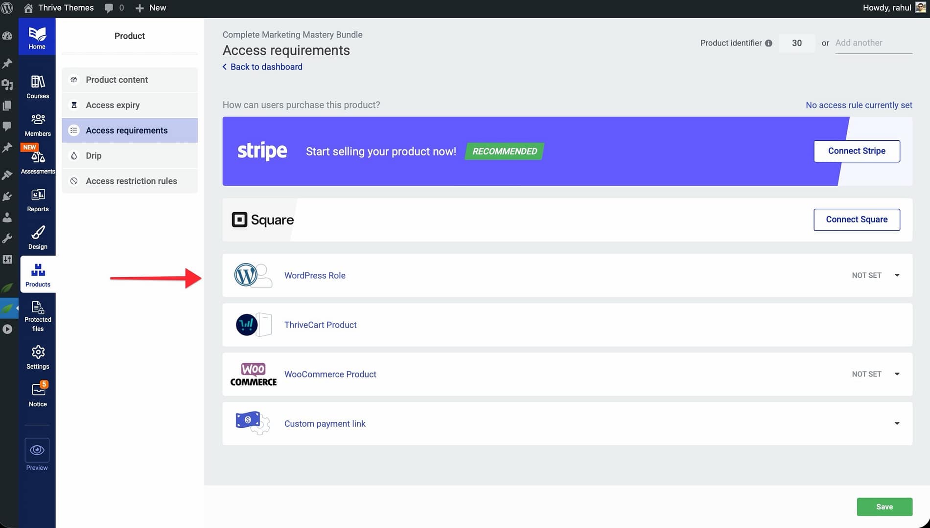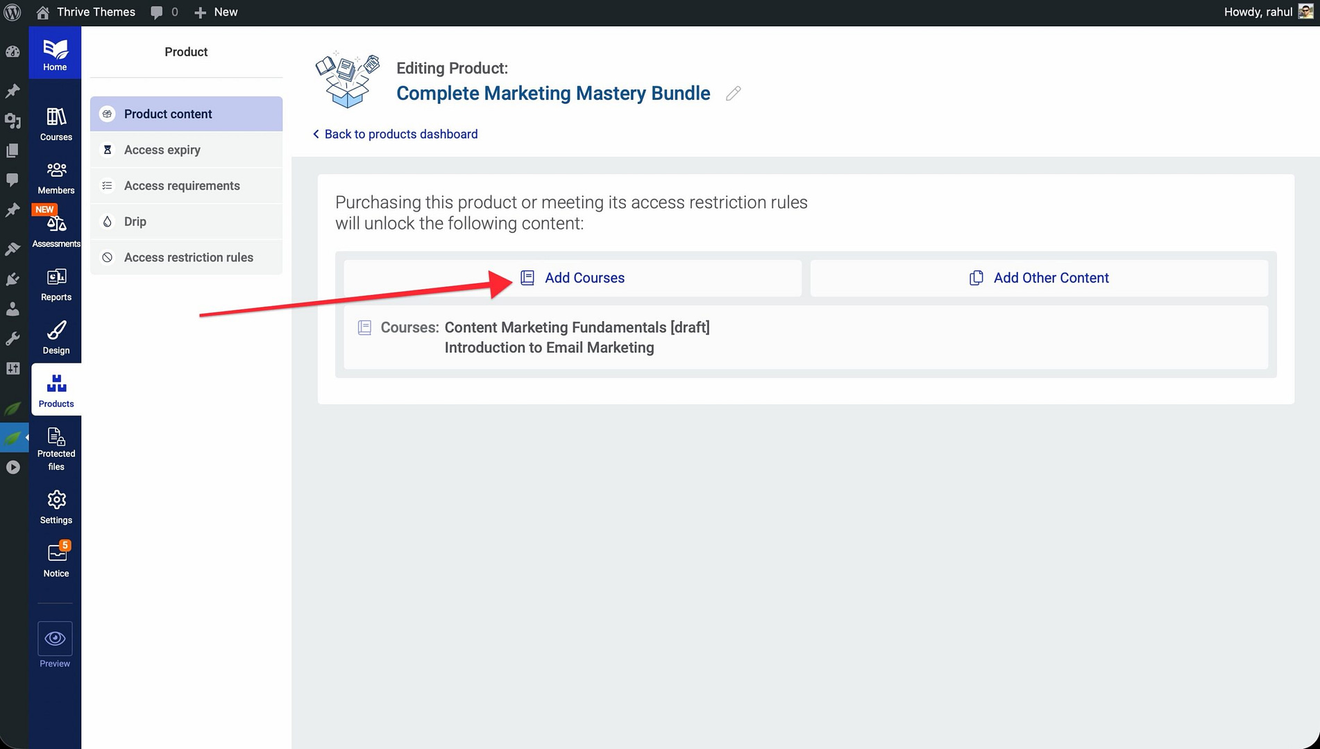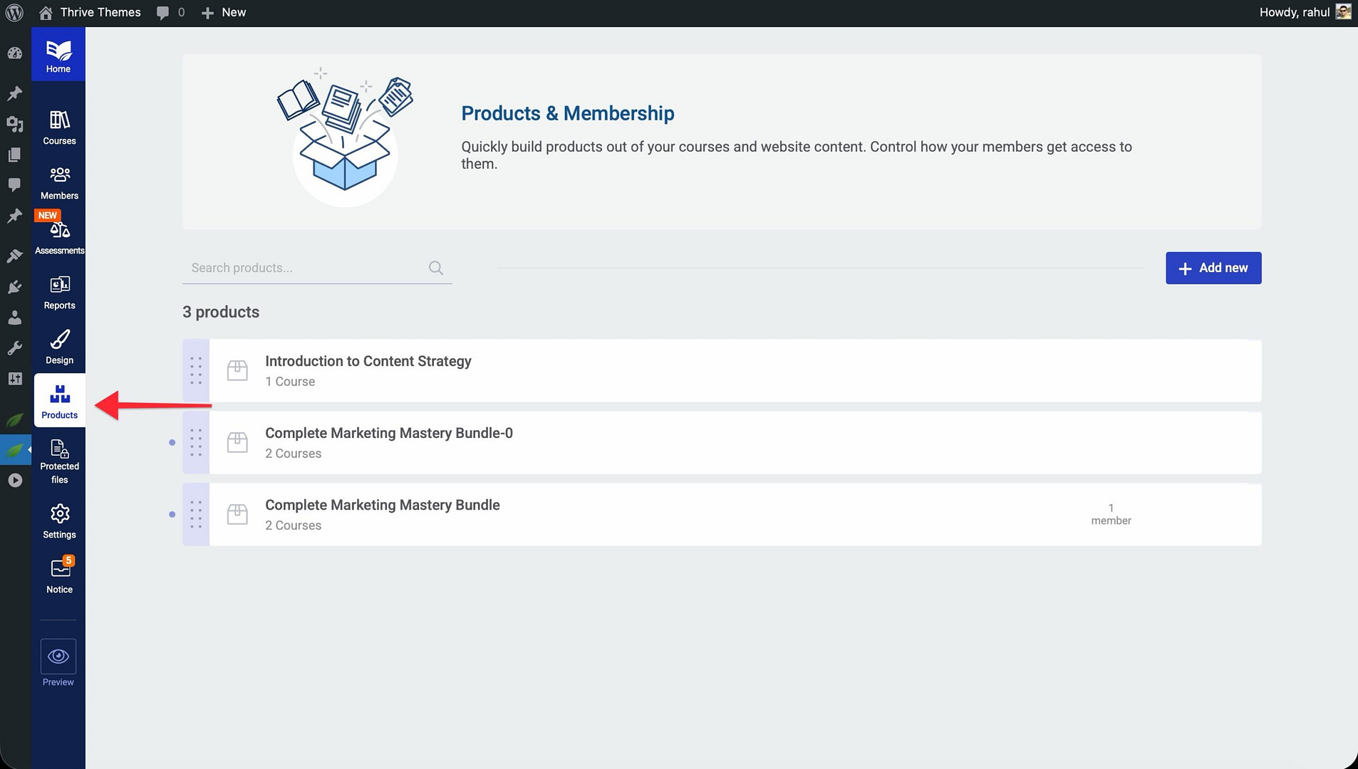 - Navigate to Thrive Dashboard > Thrive Apprentice > Products.