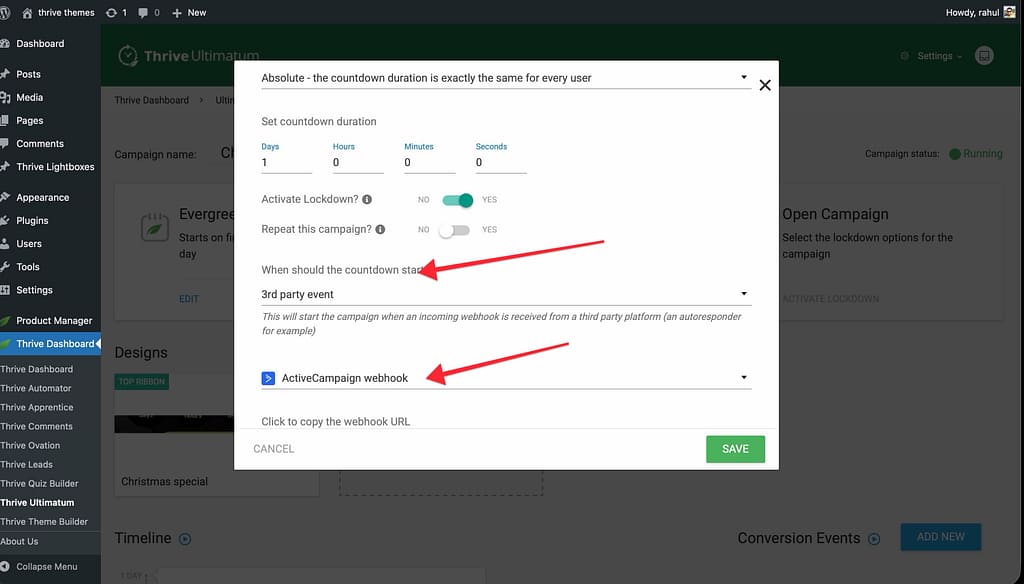 - Paste the Webhook URL you copied from Thrive Ultimatum.