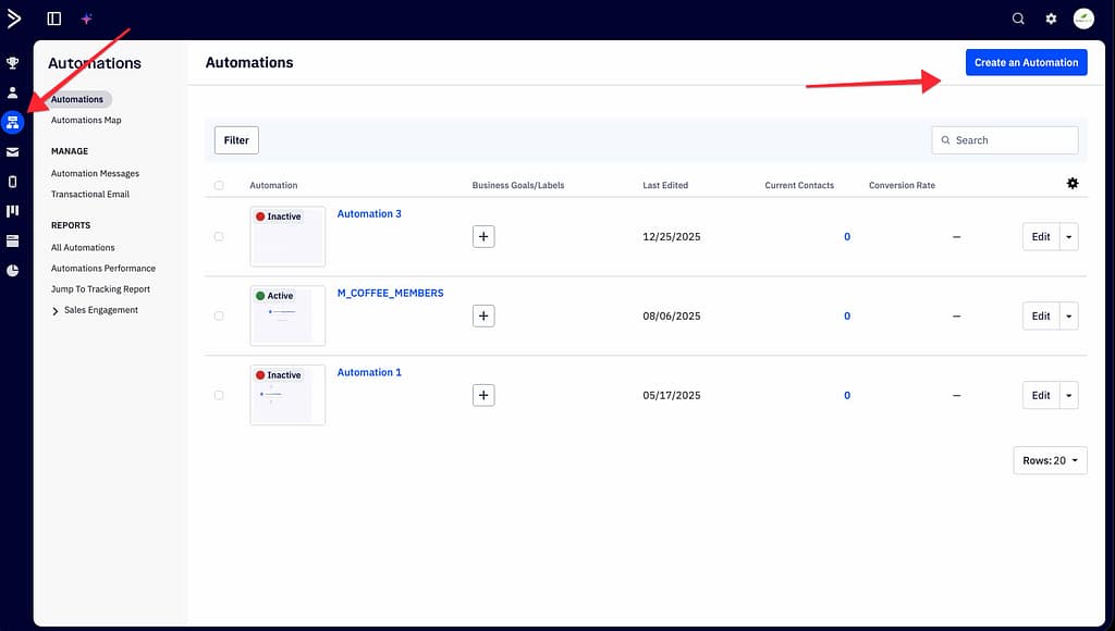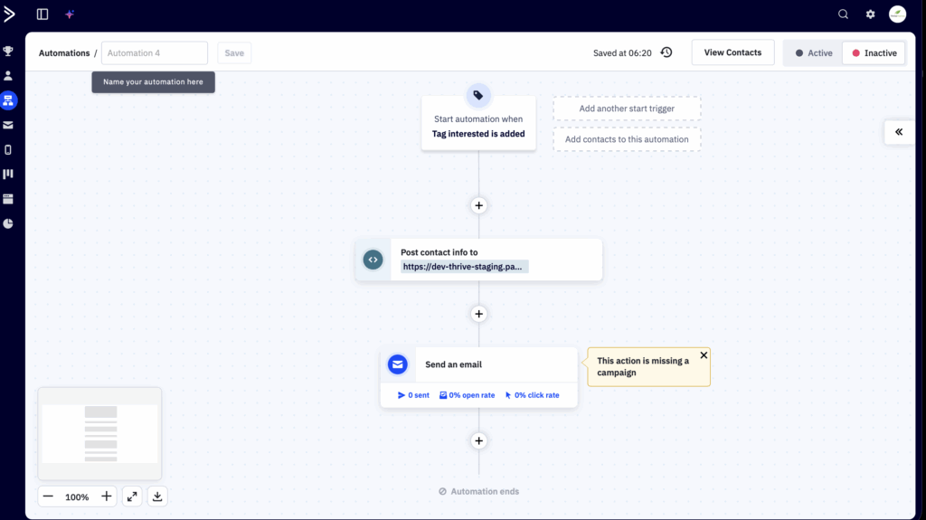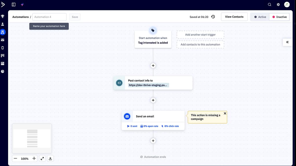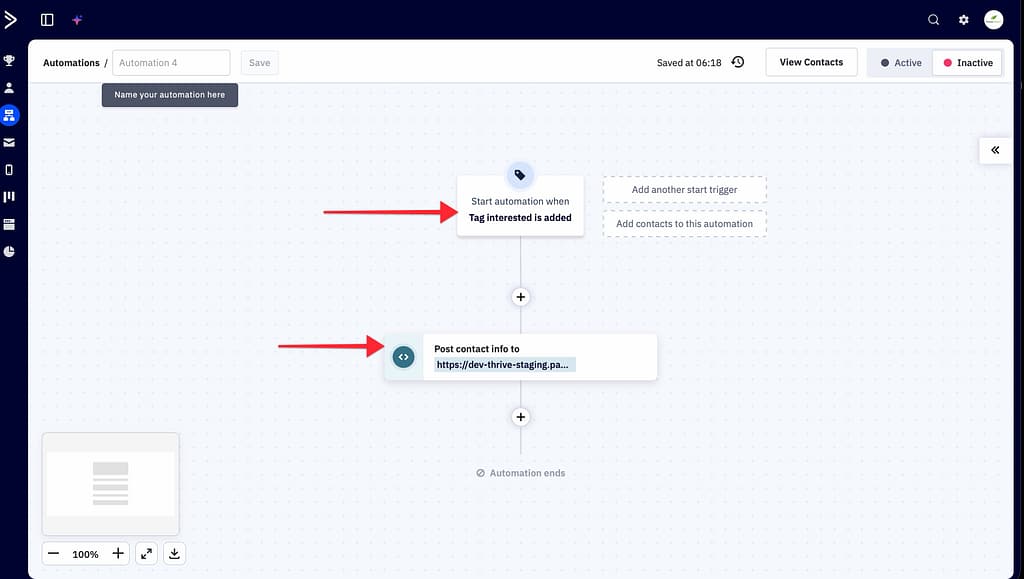 - Choose a start trigger (e.g., “Tag is added: Interested”).