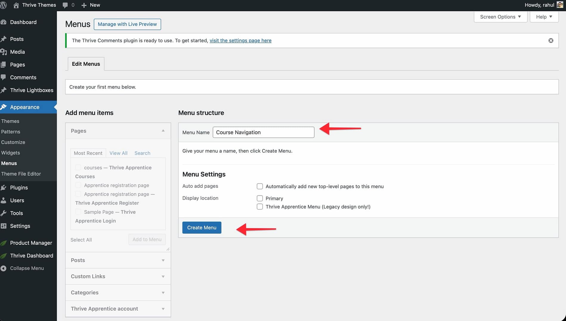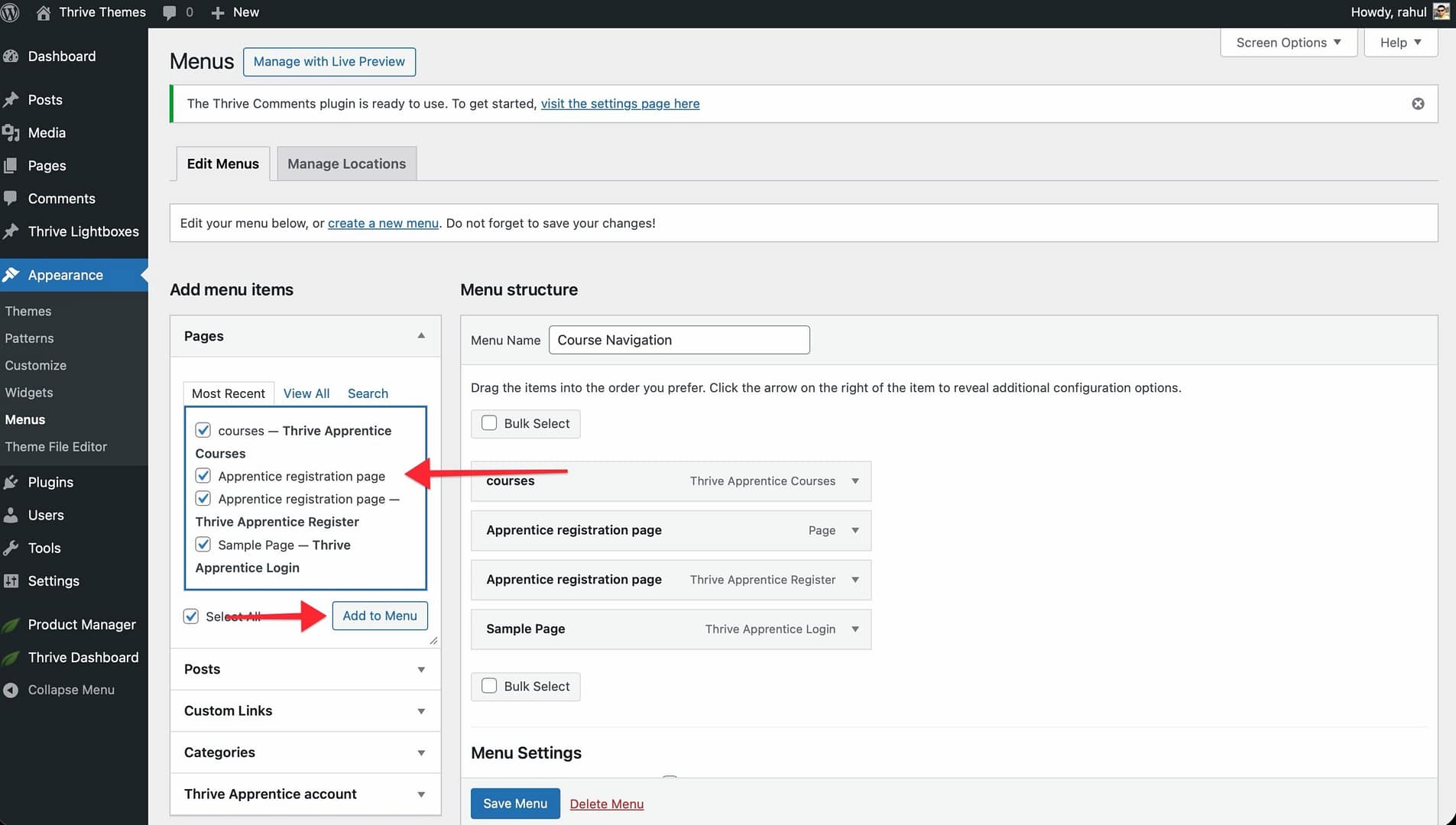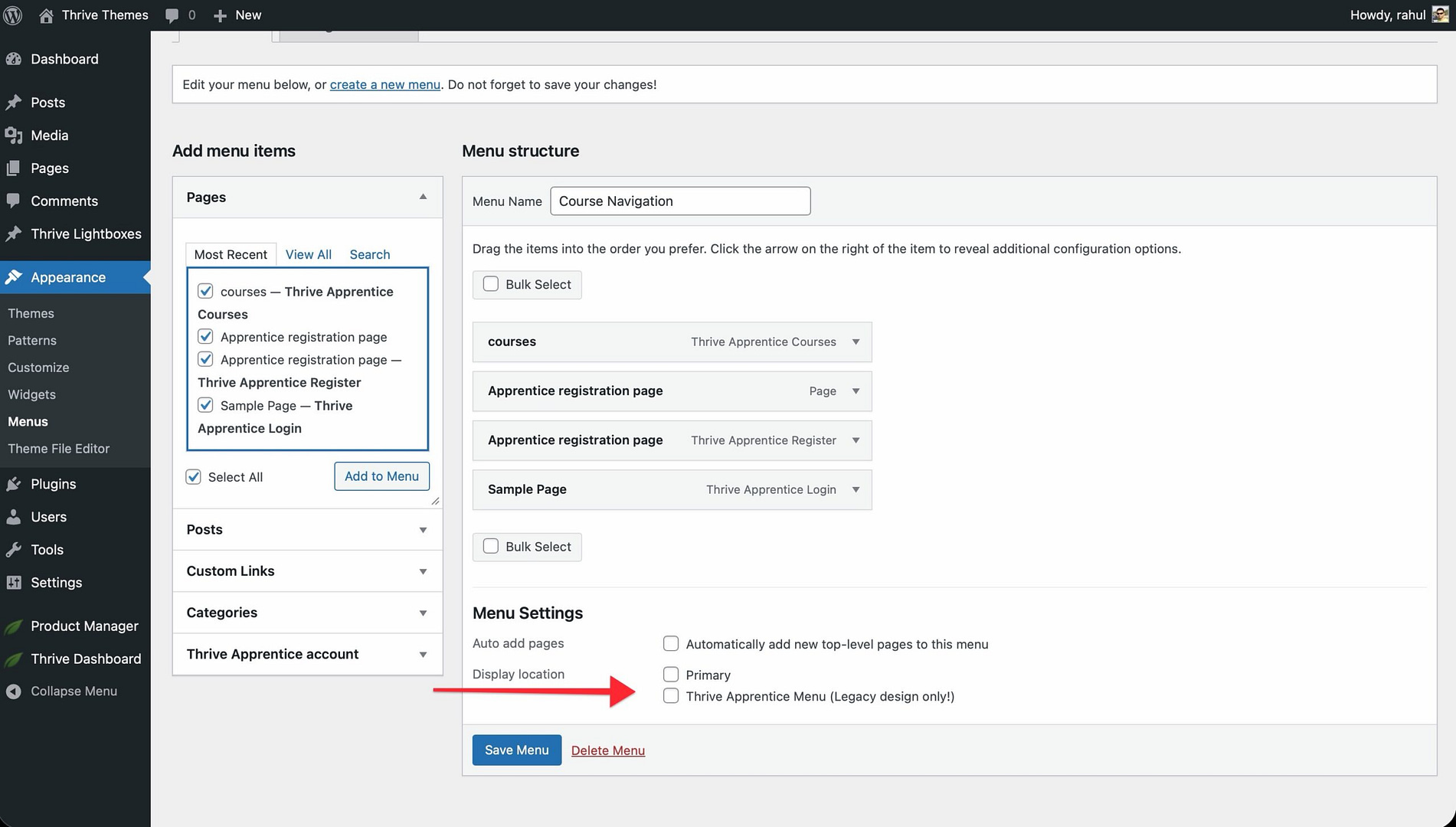 That’s it! You’ve successfully created a dedicated navigation menu for your Thrive Apprentice courses and lessons, giving your students a clean and focused browsing experience.