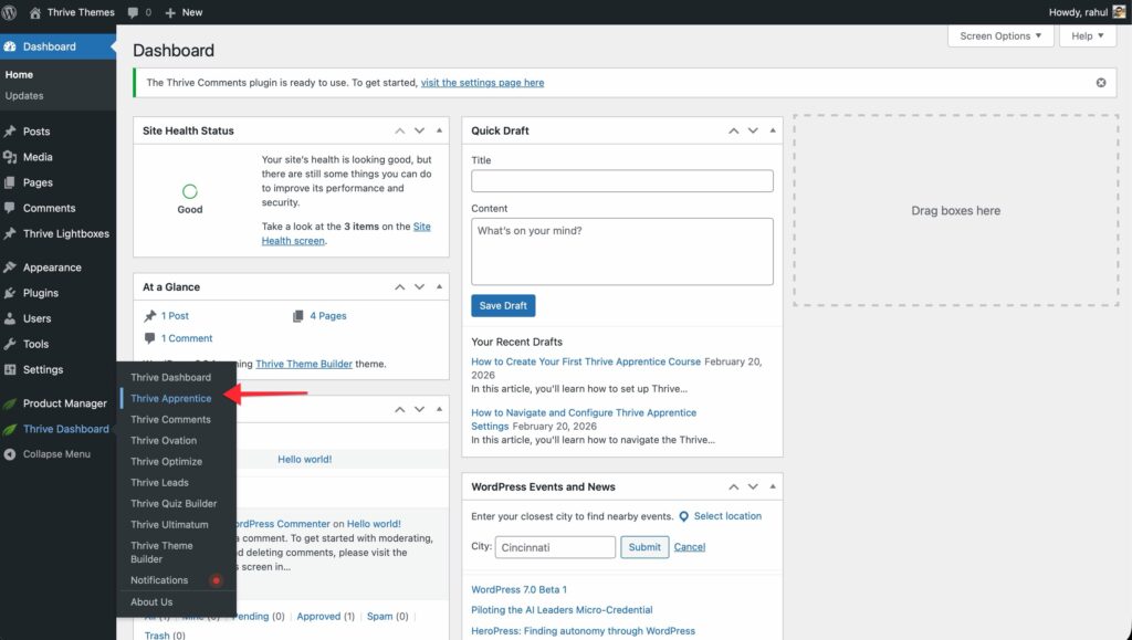 - Navigate to Thrive Dashboard > Thrive Apprentice.