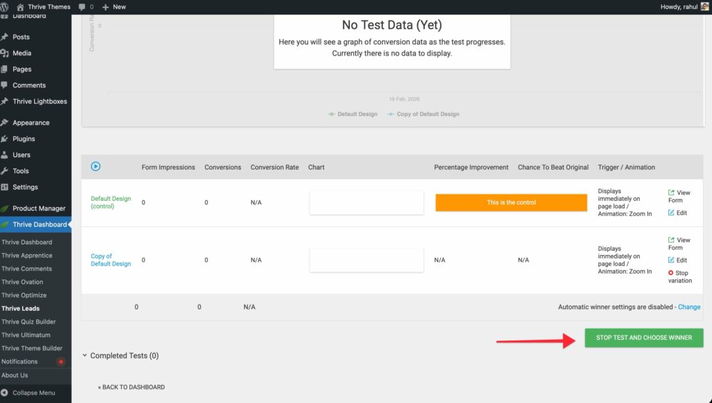 - If enabled, Thrive Leads will automatically stop the losing form and show only the winner once these criteria are met.
