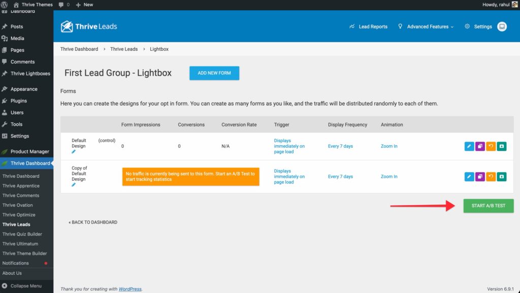 - Design Test: Test two different variations of the same form type (e.g., Lightbox A vs. Lightbox B with different colors).