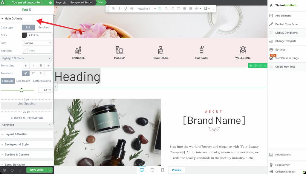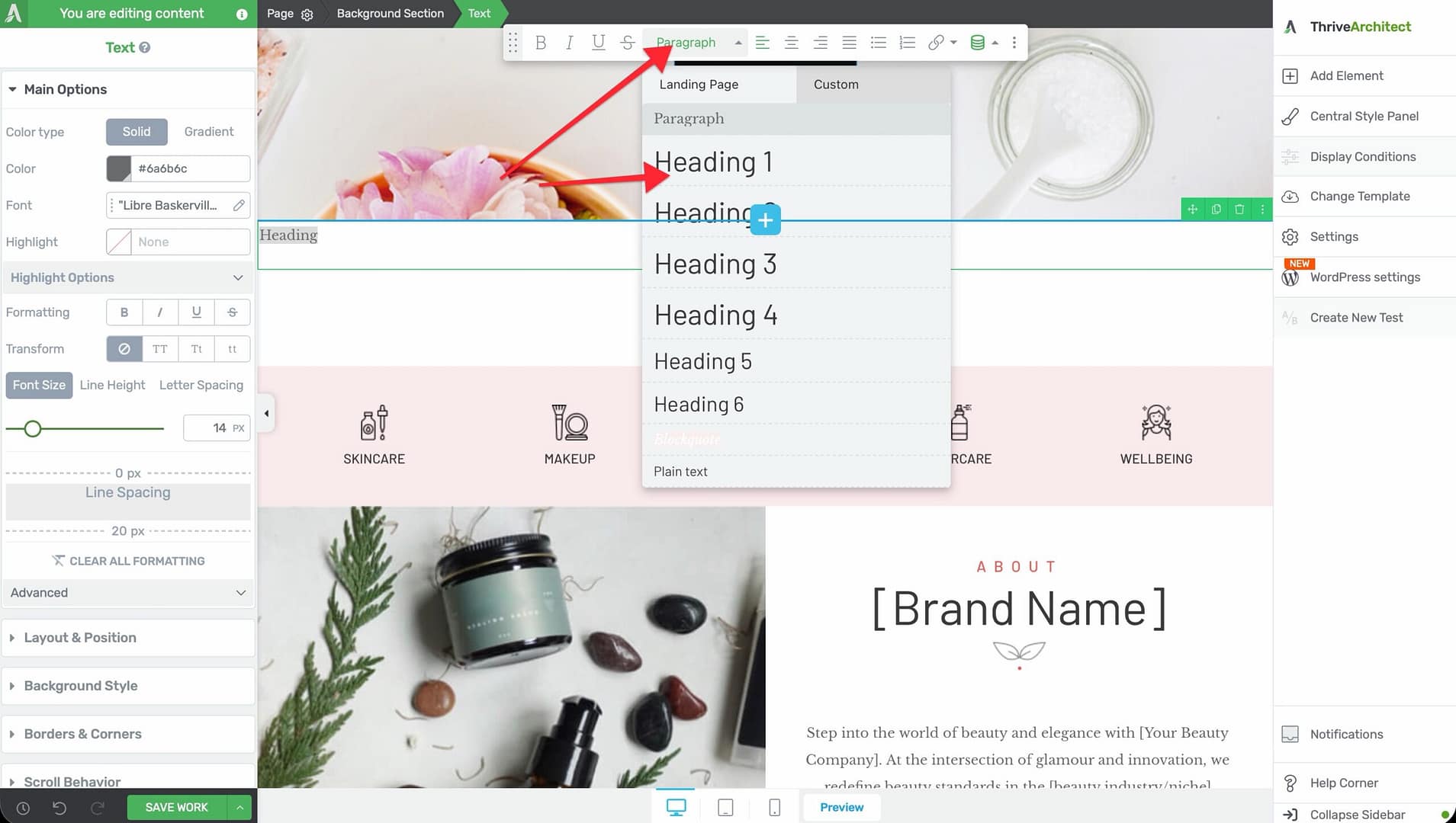 That’s it! You’ve successfully learned how to create and style headings in Thrive Architect using the Text element’s Paragraph dropdown. Properly structured headings improve both the user experience and search engine visibility of your pages.