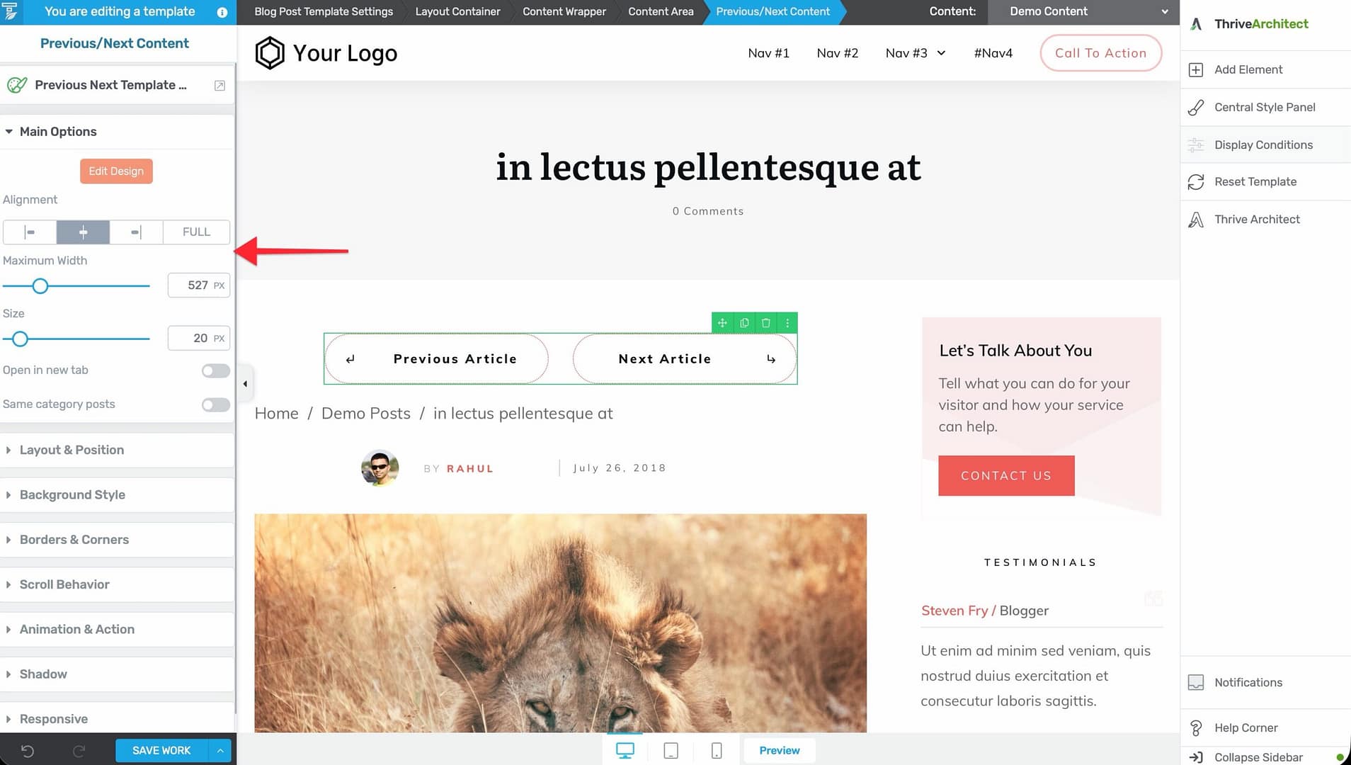 - Maximum Width — Set the maximum width of the navigation area (in pixels or percentage).