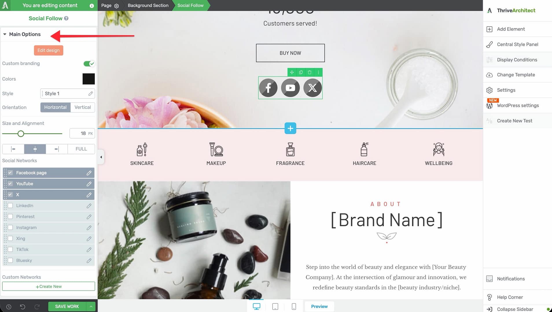 - Select the Social Follow element on the canvas.