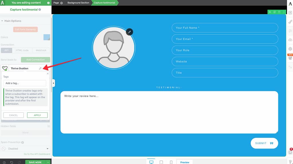 - Open your capture form in Thrive Architect.